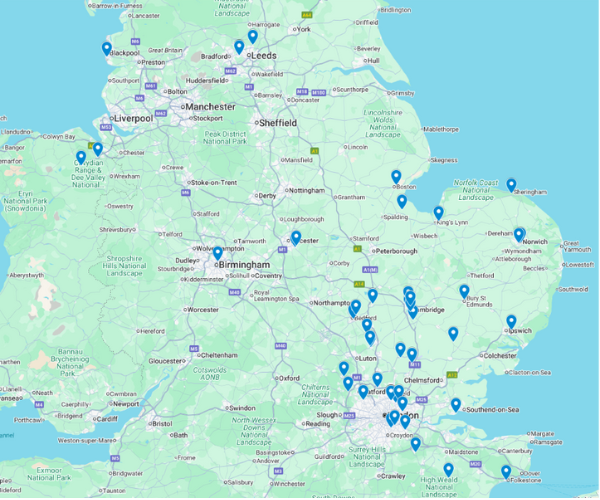 Map of the schools that attended Physics at Work 2025